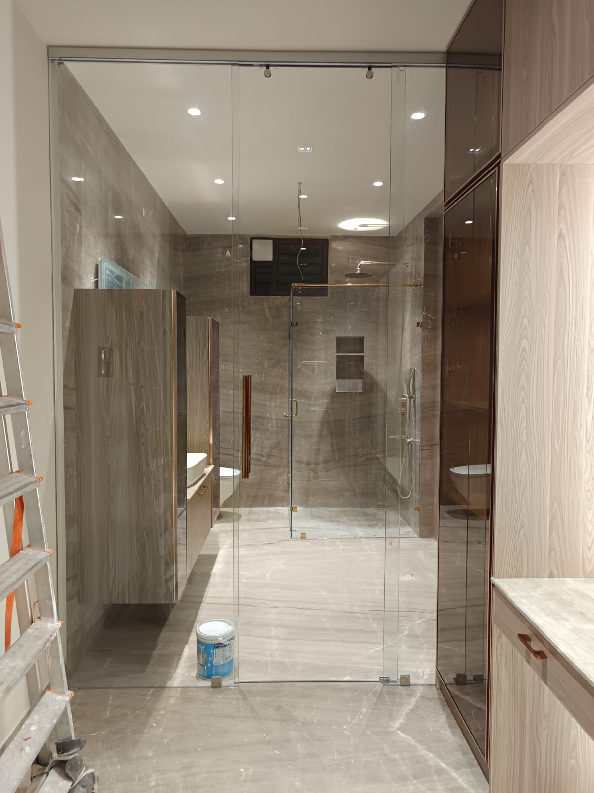 Modern, sleek glass enclosures for a luxurious bathroom look.